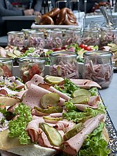 Nach den anschließenden Schulungen zu unseren Produkthighlights 2024 - der Zählerschrankgeneration HEART, der Kleinverteilerserie POLARIS und unserem neuen DC-Lader VOLTAGE - gab es beim Mittagsbuffet noch Zeit zum Austausch und Netzwerken.