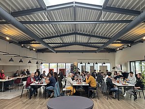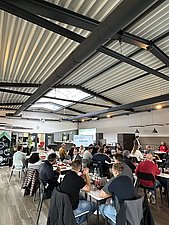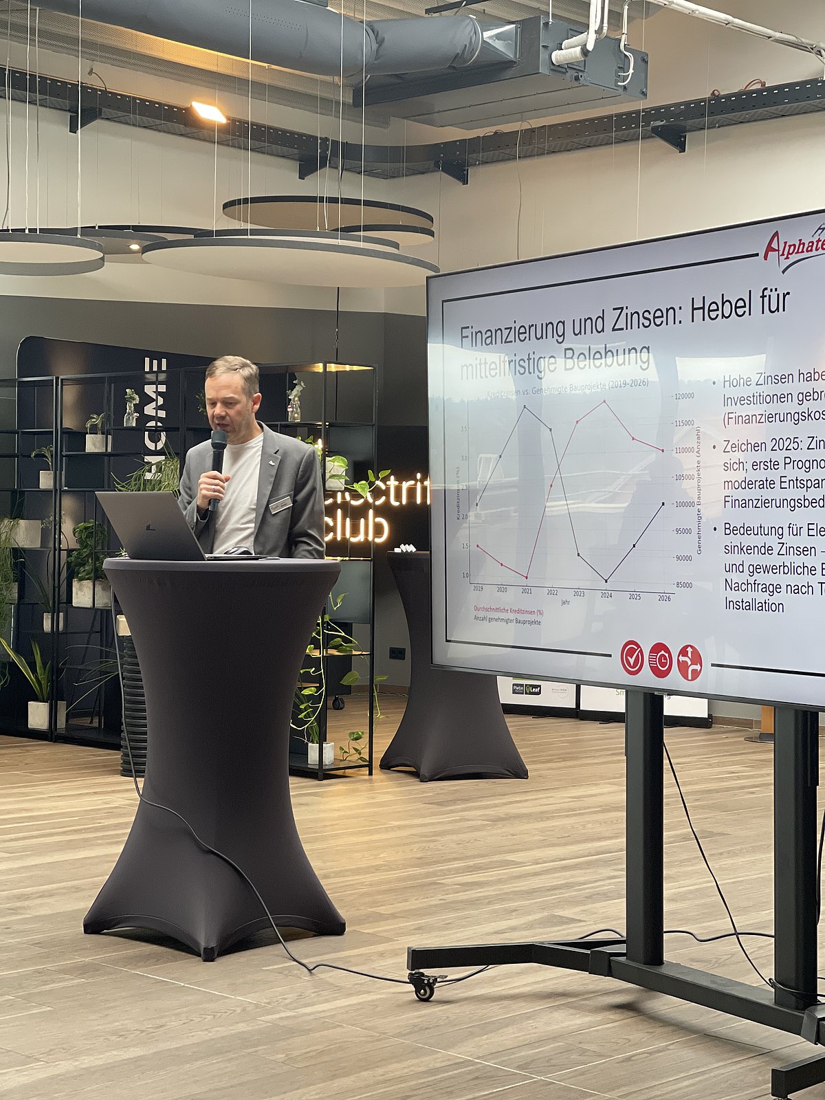 Mitte Oktober war es wieder so weit und wir verbrachten mit den Mitgliedern des electrify club einen gemeinsamen Vormittag bei uns in Bibersbach. Mit einem gemeinsamen Frühstück und einer kurzen Begrüßung durch Geschäftsführer Erwin Thomas Schiegl begann am Freitag, den 17.10.2025 die Veranstaltung in der Alphatec Eventkantine. Im Anschluss daran gab es drei Impulse aus dem electrify Netzwerk: Angefangen mit dem Vortrag von unserem Vertriebsleiter Alexander Stelzl mit dem Thema Baubranche im Fokus – Wann zieht der Markt wieder an? Gefolgt von zwei externen Beiträgen von Business-Mitgliedern. Die DSHP Gebäudeautomation und Energie GmbH berichtete über das Thema „Von Audio bis Zutritt – wie eine gewerksübergreifende Gebäudeautomation die Energiekosten senkt”. Der Beitrag von Hauff-Technik thematisierte den intelligenten Aufbau von Ladeinfrastruktur mit innovativen Lösungen für die Zukunft.
